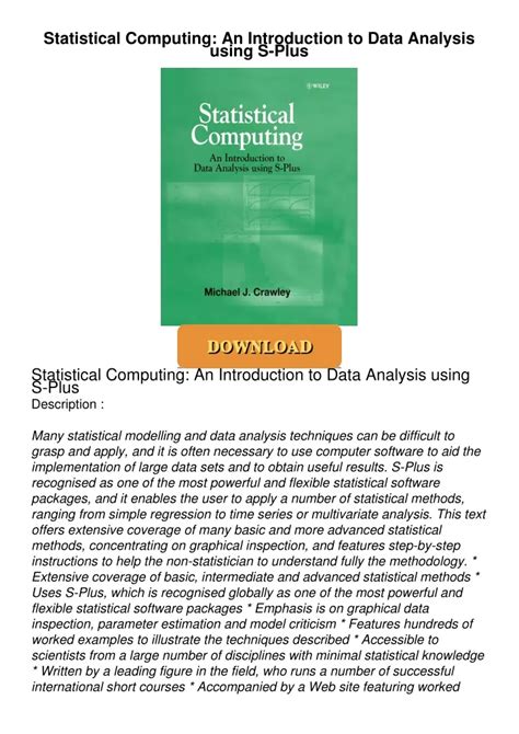 In order to read or download Statistical Computing An Introduction To Data Analysis Using Splus Book Mediafile Free File Sharing ebook, you need to create a FREE account.