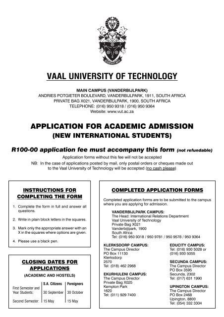 | File Name: Vaal University Application Forms In South Africa For.pdf Size: 5994 KB Type: PDF, ePub, eBook |